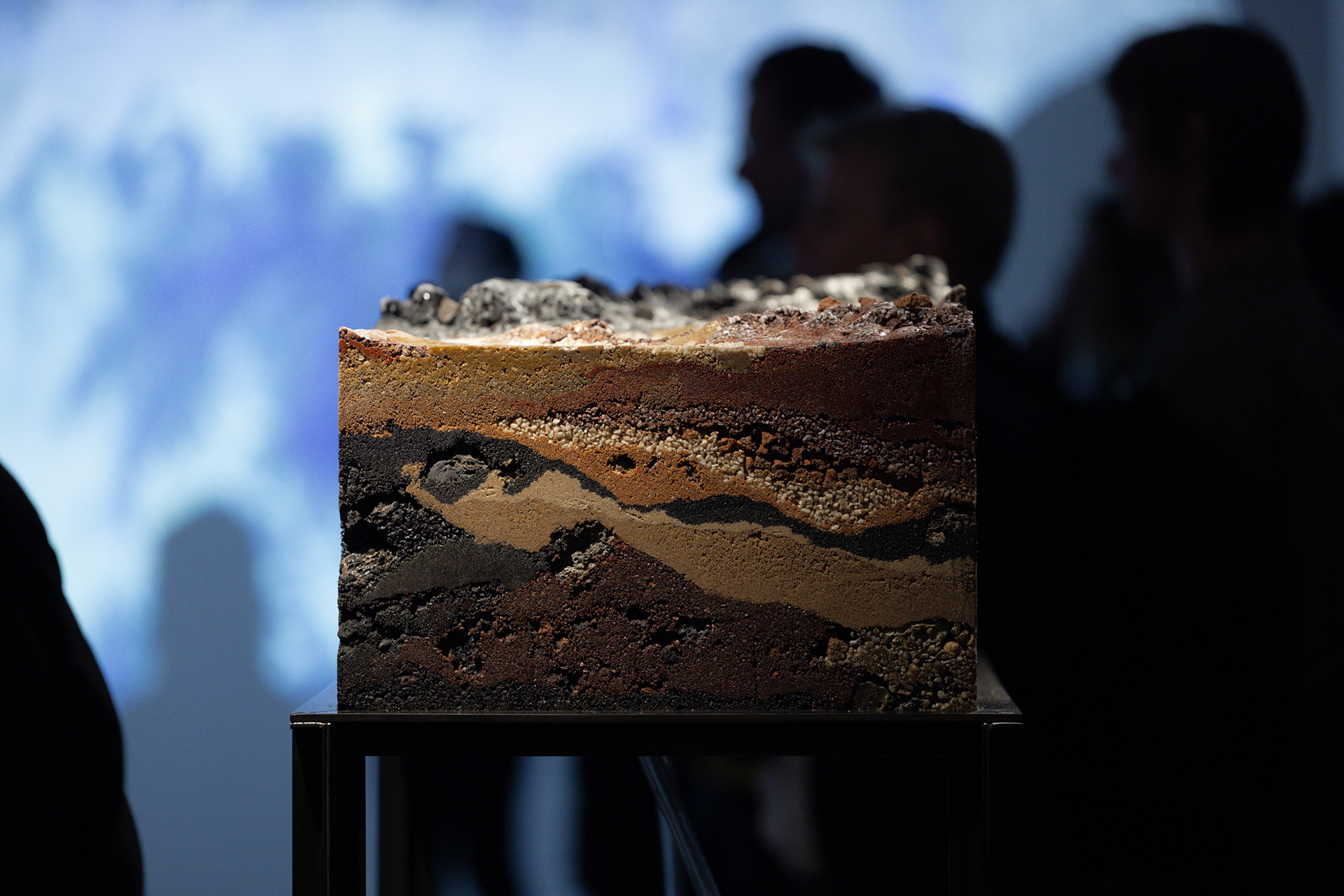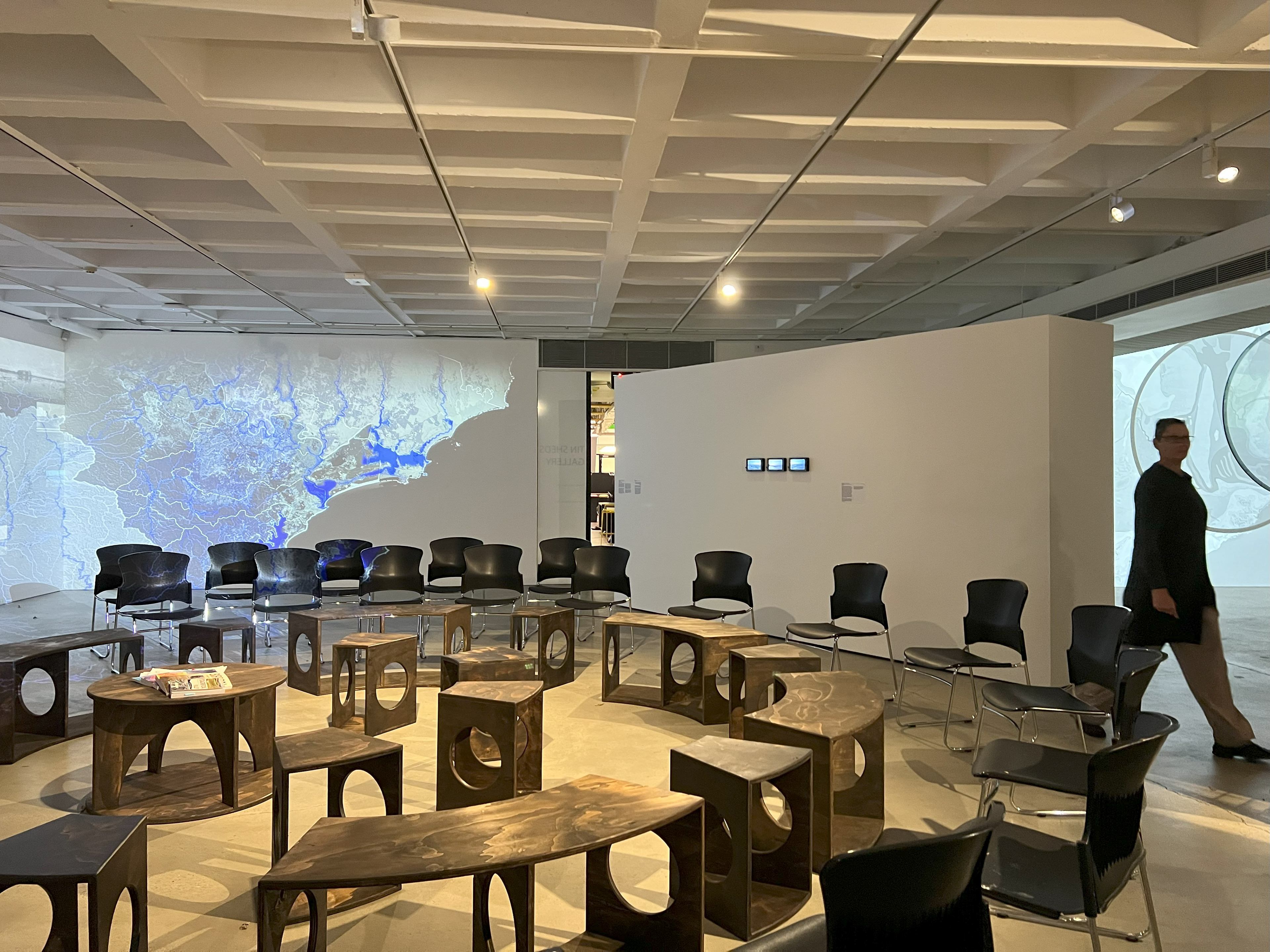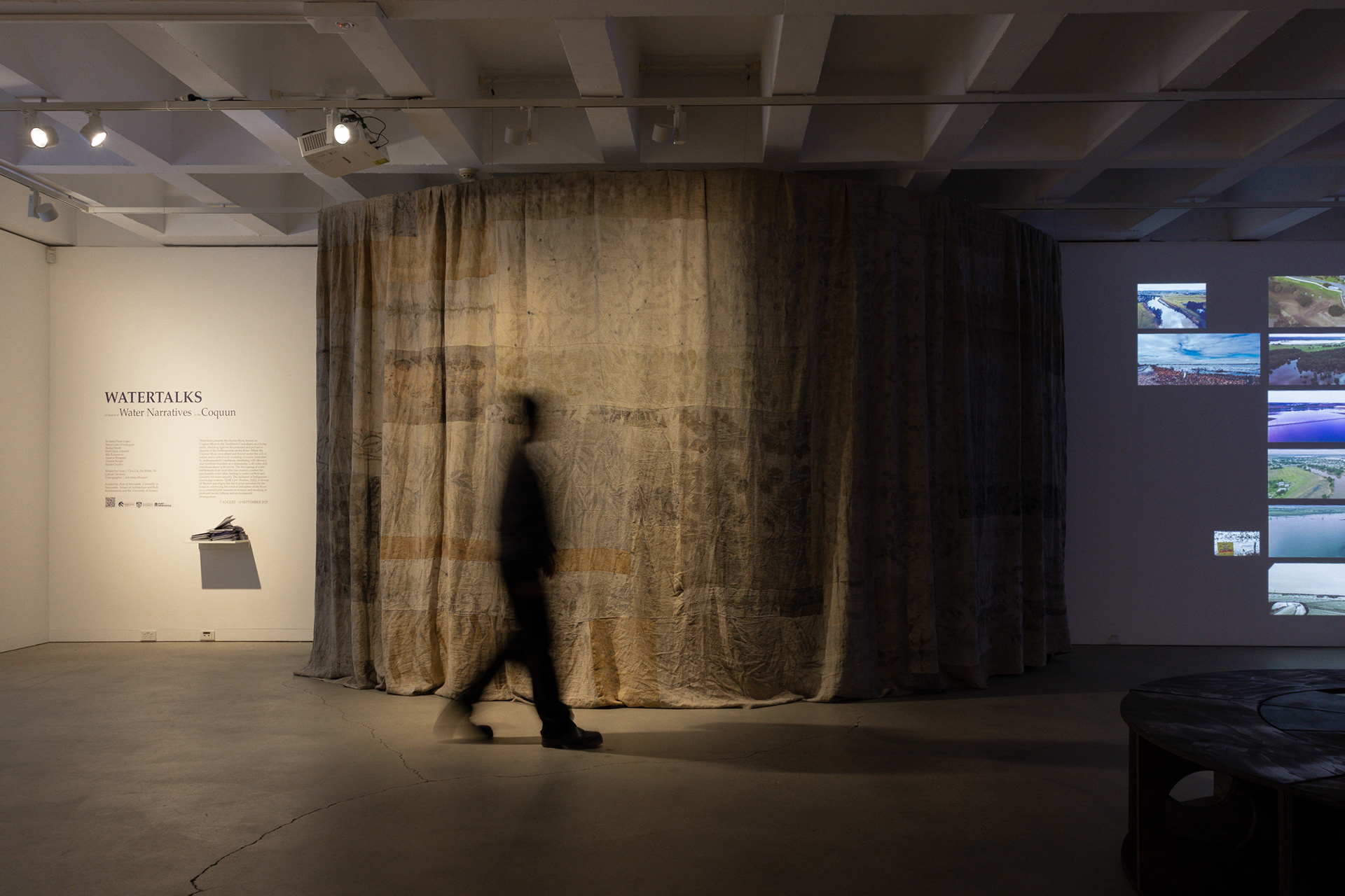 DeepWaters visualise the magnitude of the impact of colonial practices on land and waters. A stand-alone geological section cuts an urban settlement – Singleton Heights; two hydrological bodies – the Hunter River, and one of its tributaries, the Wollombi Broo; and three mine sites – Mount Thorley – Warkworth, United-Project – BHP, and Rixs Creek – The Bloomfield Group, demonstrating the imbalances caused by human inhabitation, industrial and agricultural bounds on Country. To interpret the River’s eras, layers of sand, aggregate, subsoil, and water are encased in anthropogenic materials – disrupted soils and rocks and petrochemical subproducts, framed in mild steel produced in the Hunter.