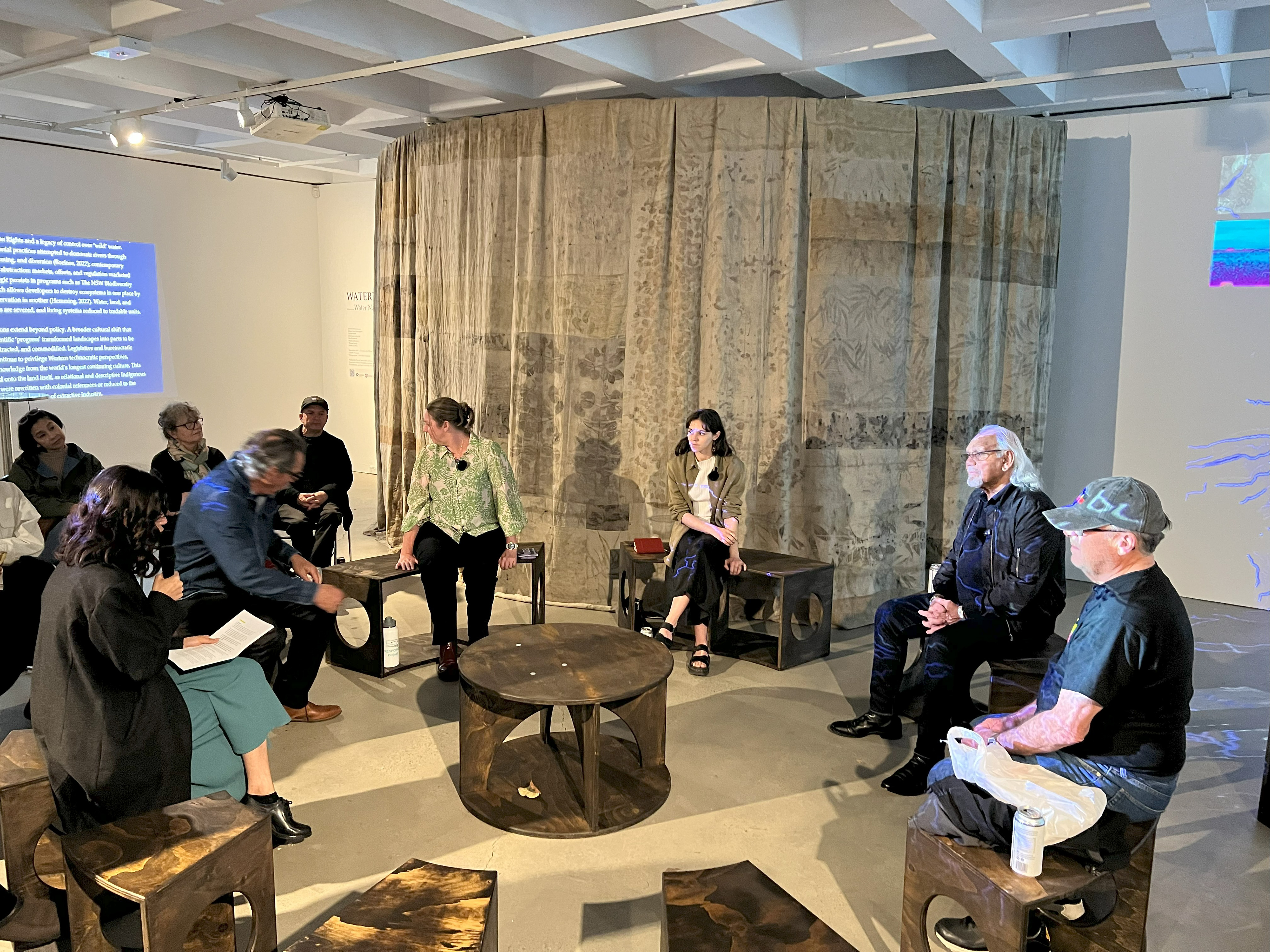 The Yarning Circle YarnAbout is connected to a series of events that gather Indigenous and non-Indigenous Knowledge holders, community members, academics, scientists, and artists to participate in Yarns & co-design panels, aiming to build a collective narrative for the Coquun-Hunter River, Estuary, and Coastal Zone.