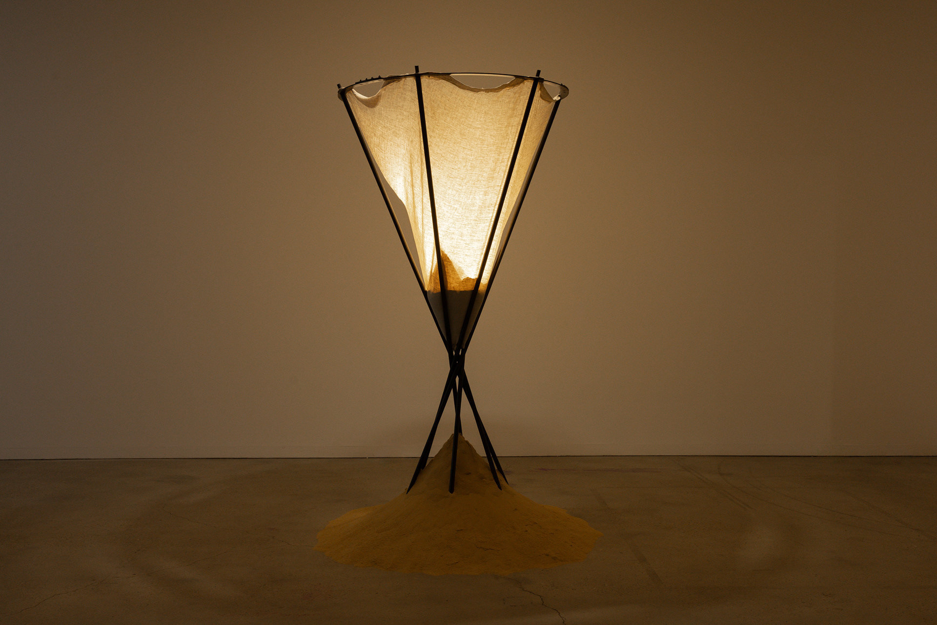 Sand and time is used here not only as a material but as a metaphor. It falls, flows, and settles. It responds to movement—of air, of water, of bodies—and is shaped accordingly. Viewers become participants in the work’s continuous reformation, their steps and interactions echoing the reciprocal relationship between people and place.