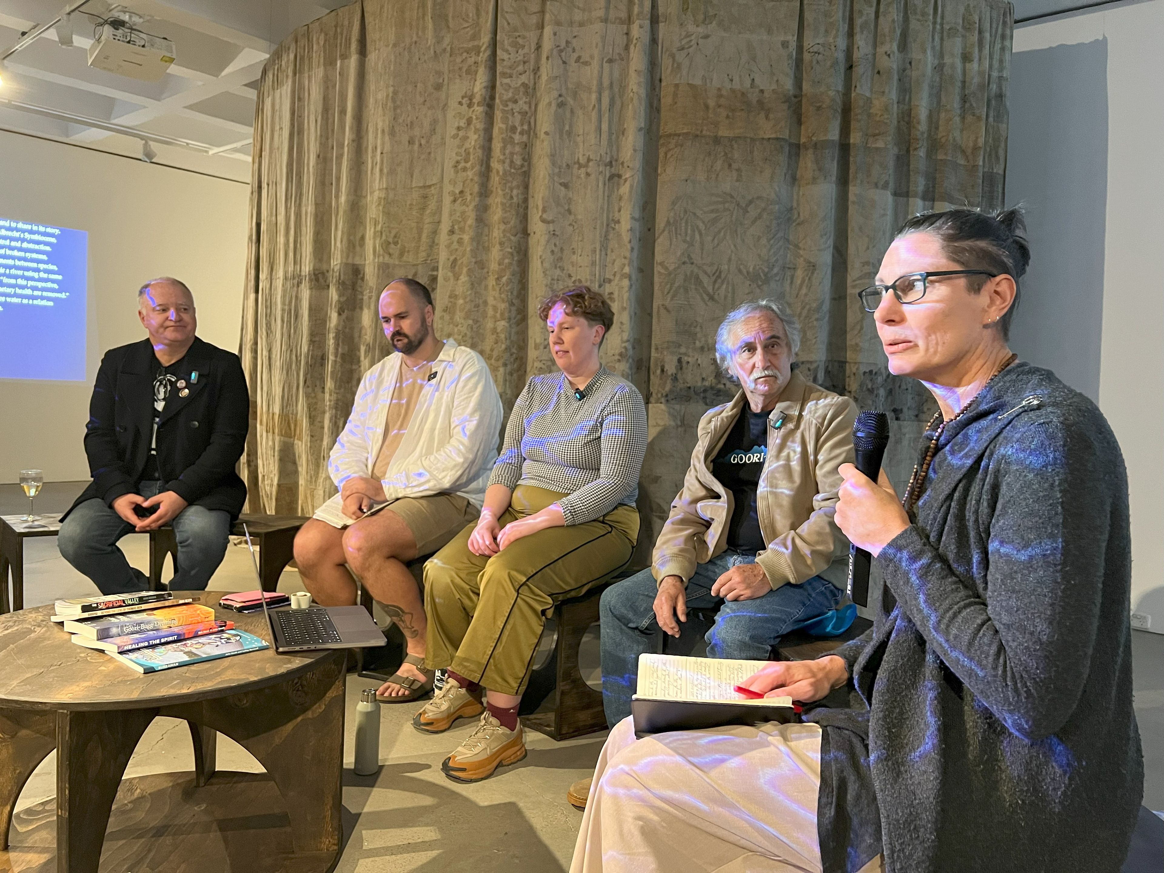 Speakers – John Drinan (author, The Sacrificial Valley), Dr John Heath (Birrpai Traditional Owner and Senior Knowledge Holder), Dr James Wilson-Miller (Wonnarrua Elder, Gringai clan of the Wonnarua Nation), Gionni di Gravio (UoN Archivist), Therese Keogh (Artist) and Bonnie Mcbain (A/Prof UoN).